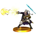 This is the male Robin, your avatar in Fire Emblem Awakening. The goal of this adventure doesn't change much because of your gender choice, but Robin's marriage options do. In Smash Bros., Robin brings powerful magic and swordplay to bear. He can exhaust his moves, but they'll be restored over time.