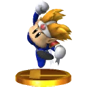 A mysterious masked swordsman from the Kirby series. His cape can turn into wings, which gives him the ability to fly. His swift swordplay and ability to stay in the air give him an edge in this game. He can combine five mid-air jumps with a special move to make recovering a cinch. If you use him, try to keep the battle airborne!