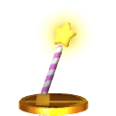 Swung normally, this item will deal a regular physical attack. But if you charge up the blow, it becomes a magic wand that launches stars! The Star Rod is the source of power for the Fountain of Dreams in Kirby's Adventure. Using the rod, Kirby was able to defeat Nightmare.