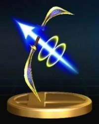 The bow Pit got from Palutena after the Medusa incident. As a standard bow, it's capable of firing arrows of light that can change direction. It can also be split to form two short swords--Pit holds one sword in his right hand in a standard grip and one in his left in a reverse grip. He may hold them like this so he can shift between bow and swords without losing a beat.