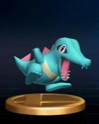 A Big Jaw Pokémon. This alligator-like Pokémon stands on two legs. It has a small body but an impressive jaw that boasts potent bite power. It can do serious damage to someone even if it's just playing. Its tendency to chomp down on anything that moves in front of it means Trainers have to be extra cautious around it. When it levels up, it evolves into Croconaw.