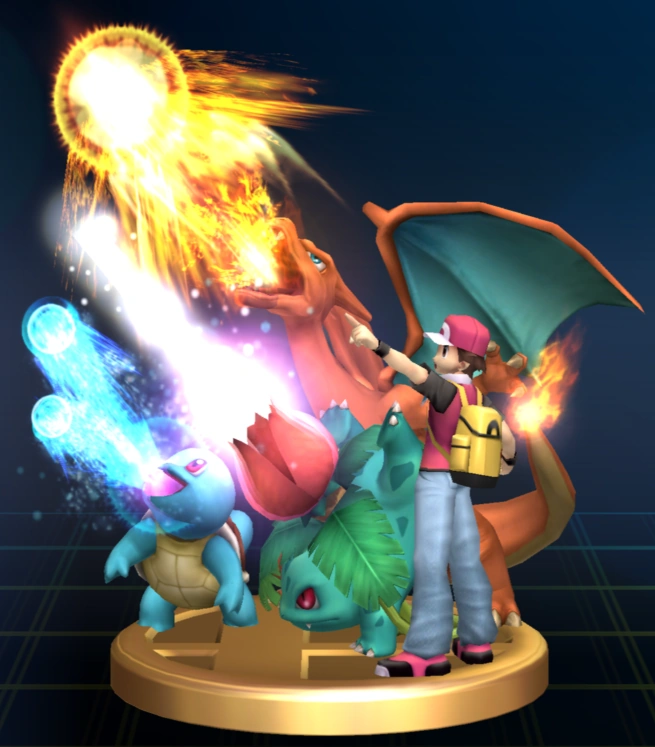 The Final Smash of the Pokémon Trainer. Squirtle, Ivysaur, and Charizard join forces to simultaneously use Hydro Pump, SolarBeam, and Fire Blast. This is the only time all three of them appear on the screen together, so this move boasts the strength of three in one. A window will appear on the screen, but don't worry about it.