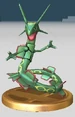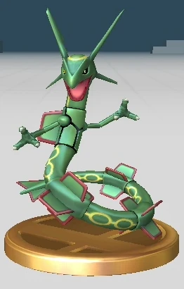 A Sky High Pokémon. It normally resides high up in the ozone layer where it flies endlessly, so it is rarely seen. However, when Groudon and Kyogre began to fight, it appeared to calm them down. It has the ability Air Lock, which blocks all weather-condition effects. It has exceedingly strong abilities, and its attack power is especially remarkable.
