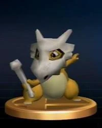A Lonely Pokémon. It wears its mother's skull as a helmet--for this reason, no one has ever seen its face. It sometimes sees its departed mother's face in the full moon, which causes it to grow sad and cry. The stains on the skull are tracks of its tears. When it cries, the skull shakes and emits a mournful sound. When it levels up, it evolves into Marowak.
