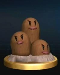 A Mole Pokémon. It has three heads that seem to all think the same thing. It lives in caves and is skilled at digging--no matter how hard the ground is, it can dig up to 62 miles below the surface. It's among the fastest of Ground-type Pokémon, a characteristic that can be counted on in combat. Its Sand Tomb is an effective attack that prevents opponents from escaping.