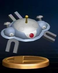 A Magnet Area Pokémon. It's a Magneton that evolved in a special magnetic field at Mt. Coronet. Its appearance is quite different after it evolves, but it still has three round eyes. Its shape changes but not its type--it's still both an Electric- and Steel-type. It learns Magnet Rise, a technique that temporarily nullifies Ground-type attacks, a traditional weakness.
