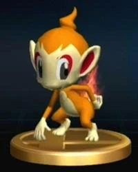 A Chimp Pokémon. With a flaming tail, Chimchar is skilled in Fire-type moves. Its light body affords it the ability to scale steep cliffs and live atop rocky mountains. Some say that the fiery tail is fueled by gas made in its stomach. Not even rain can put out the flames, but Chimchar always puts out the fire when asleep. Chimchar evolves into Monferno.
