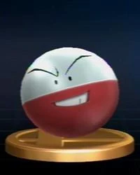 A Ball Pokémon. The more electricity it stores in its body, the quicker it moves. One danger of storing that much electricity is that the slightest stimulus may cause it to explode. Moves it specializes in include Selfdestruct and Explosion. Its love of electricity often causes it to gather in groups near power plants.