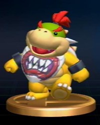 - The Paper Bowser trophy's description is not quite accurate. Although it says that Bowser's attacks do nearly twice as much as Mario's and Peach's attacks, they actually do exactly twice as much. This error was not present in the Japanese version.