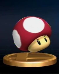 A mushroom that makes you giant sized. When you're this big, your attack power increases and you're harder to launch. But you become an easy target and may come under serious fire. Unlike other items, it doesn't remain in one place but moves to the right once it appears. Why to the right? Well, because that's what it did in its original appearance in Super Mario Bros.