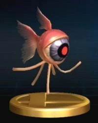 An enemy that, at first glance, looks like a goldfish, with a tail and dorsal fin. It turns out to be more crazy-eye creature than fish. (And what's with the funky dangling tentacle thingies?) Floating lazily through the air, a Feyesh usually looks like it's sleeping. BUT! When it spots you, its eye opens, and it attacks with its five tentacles. Gaahh! Attack of the Tentacles!