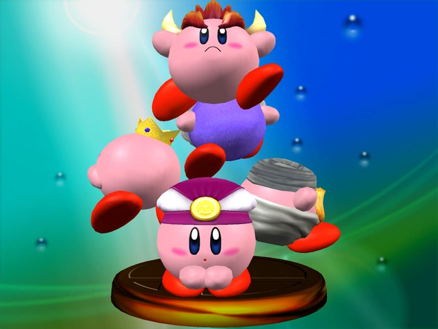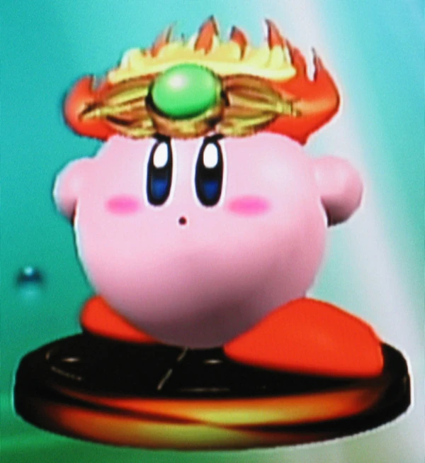 - The reflection on the crown of the Fire Kirby trophy is an embossed and inverted baby face.