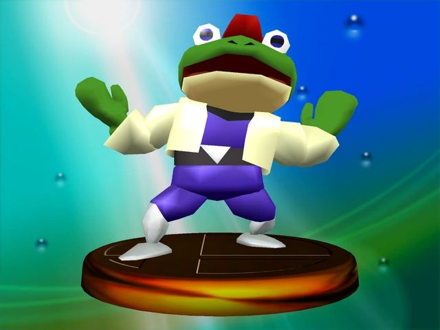 Slippy Toad is the mechanical genius behind most of the Star Fox team's new weapons and technology, and just lately he's been spending the bulk of his time in Research and Development. He's also a competent pilot, but his enthusiasm tends to outweigh his technical flight skills. He and Fox have been friends ever since their school days. |