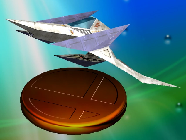 The mother ship of the Star Fox team. When in battle, the ship's robot, ROB, can assume control of the bridge, allowing all hands to take to their Arwings or combat positions. The ship runs plasma engines capable of warp speeds, and its front lasers are effective both in battle and in clearing paths through asteroid belts. |