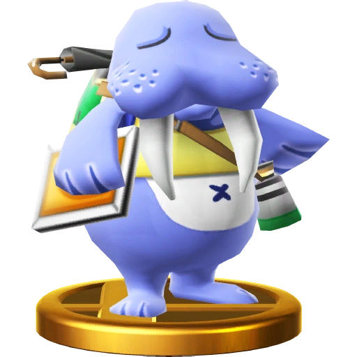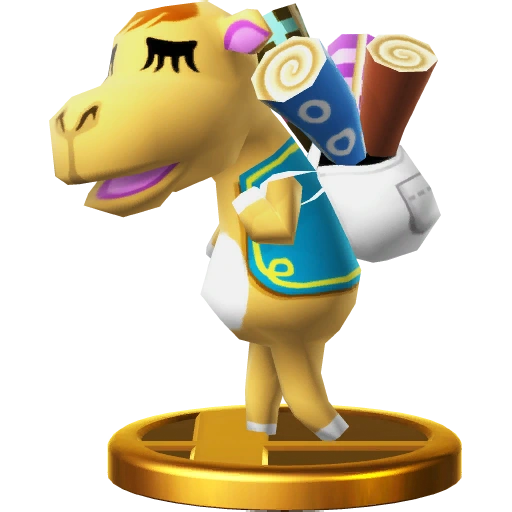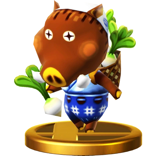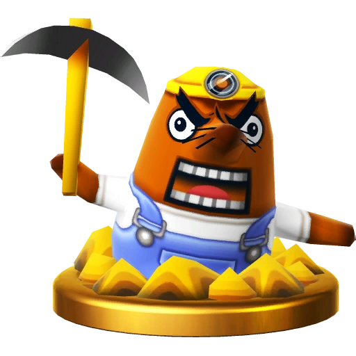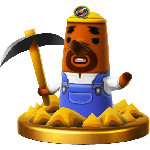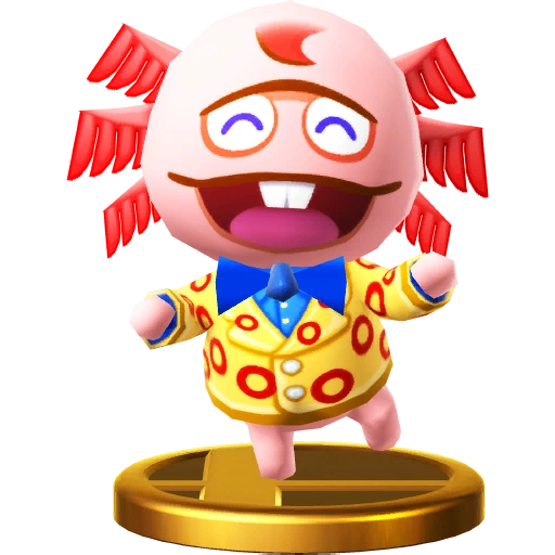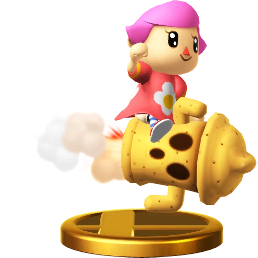 Gyroids are a common sight in the Animal Crossing series. In Animal Crossing: New Leaf, a Gyroid named Lloid dons a helmet and collects funds for public works. The Villager makes use of a rocket-powered Lloid for his side special. The farther he flies, the more powerful his attack will be! Gyroids are a common sight in the Animal Crossing series. In Animal Crossing: New Leaf, a Gyroid called Lloid dons a helmet and collects funds for public works. The Villager makes use of a rocket-powered Lloid for his side special. The further he flies, the more damage he'll do when he crashes into someone!