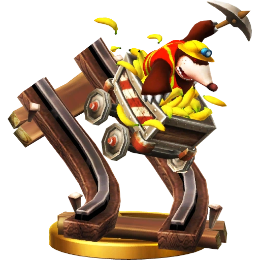 The Mole Train travels through the Cave area. It's generally a hardworking train, but Banjo Tiki sends it speeding down the track. Chase after it using the separated carts, all while dodging the pickaxes thrown by the hypnotized Mole Miners. Defeat those critters when you get a chance! Hypnotised by Banjo Bottom, Mole Miner Max and his workers use the Mole Train and its carts to move massive amounts of bananas around. When a tie-wearing gorilla shows up to put a stop to the Tiki Tak Tribe's plans, though, Banjo Bottom uses the train to try and escape. Whack those moles and take out Banjo Bottom!