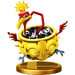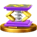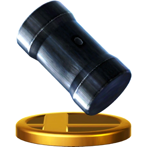 A strong spring that can bounce you higher than you've ever been before. If you throw this down while you're in midair, you'll get a boost and sail even farther into the air! Try to be careful, though, since this spring may fall on its side and end up launching you sideways instead of up. Jump on this to jump higher than you ever have before! Throw it in the air, then land on it to jump even higher! Then use special attacks, or even do another jump in mid-air! If it's lying on its side, though, just bumping into it might be enough to launch you off the stage. You don't want that, so be careful!