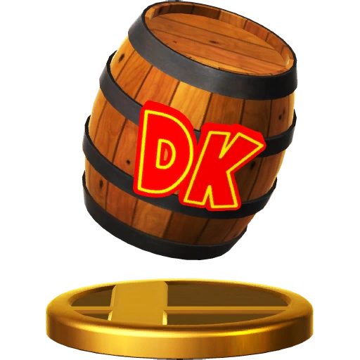 Little known fact: the "DK" on a DK Barrel stands for "Donkey Kong"... What? You mean you already knew that? In that case, you must also know that hopeful feeling you get upon seeing one of these in a really tough stage. Break one to release a helpful partner! Did you know that the "DK" on a DK Barrel stands for "Donkey Kong"? ...You did? Well then, maybe you also know what a beautiful and hopeful feeling it is to see one of these when you're toughing it out alone, all sad and forlorn. Break it and a partner will show up to lift you out of your doldrums and help you on your way.
