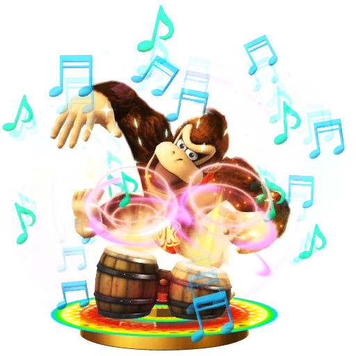 In this Final Smash, DK drums on a set of bongos, just like in the Donkey Konga games. Press the attack button in rhythm with the circles to boost the attack's range and power. Enemy attacks won't affect you, but you can't move, either. Auto-scrolling stages will slow down but won't stop—don't get too carried away in the beat! In this Final Smash, DK drums on a set of bongos, just like in the Donkey Konga games. Press the attack button in rhythm with the circles to boost the attack's range and power. Enemy attacks won't affect you, but you can't move either. Auto-scrolling stages will slow down, but be careful or you might still self-destruct!