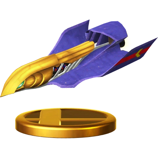 The treasured ship of the bounty hunter Captain Falcon. Don't get this confused with the Blue Falcon, his F-Zero machine. The nose looks like a falcon, reflecting Captain Falcon's dauntless pursuit of his prey. Beware, bounty heads! Captain Falcon will track you down! Captain Falcon's beloved ship. However, it isn't so much a racing machine as it is his personal base of operations, used for chasing down his targets as a bounty hunter. A ship with style and substance, it's the perfect fit for our intrepid hero as he scours the galaxy!