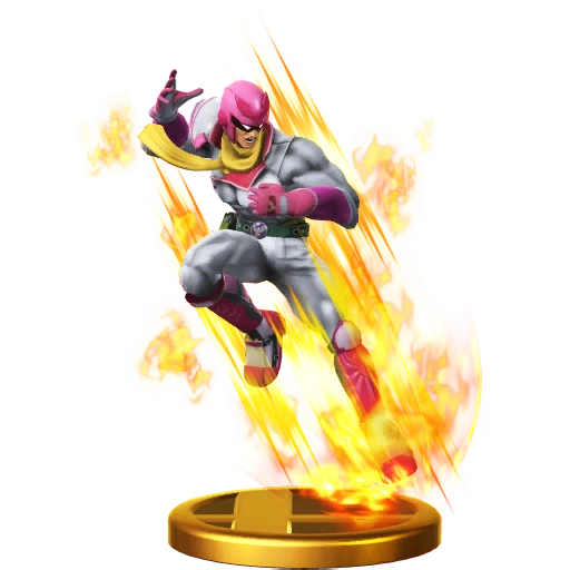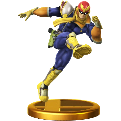 In the F-Zero racing scene, Captain Falcon uses his Blue Falcon to win big. His origin largely a mystery, he's made his way to the Smash Bros. battlefield to prove his worth outside the cockpit. He's got speed and power, and his distinct Falcon Punch leaves a dent. Start it in the air to surprise your foes! We love it when this F-Zero pilot from Port Town takes a break from racing the Blue Falcon to take on challengers in brawls. His balance of speed, power and weight is spot on, and his slow but mighty Falcon Punch is oh so sweet when it finally connects. Try starting the attack in mid-air and punching your way into a frantic fray!