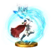 This is the male Robin, an avatar in Fire Emblem Awakening. The goal of that game doesn't change much because of your gender choice, but Robin's hairstyle options do. In Smash Bros., Robin brings powerful magic and swordplay to bear. He can exhaust his moves, but they'll be restored over time. When Robin is found at the start of Fire Emblem: Awakening, he (or she!) discovers that, even without his memories, he is a master tactician. In this game, his attacks are powerful, but in true Fire Emblem style, how many times his magic can be used is limited. This also applies to the thunder magic his sword is imbued with.
