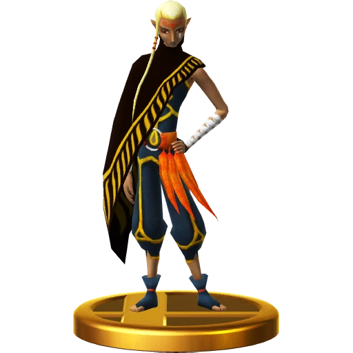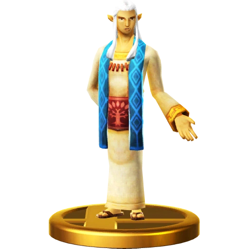 This elder from the Sealed Temple offers Link advice on his adventure and also gives aid to Zelda after she falls from Skyloft. It might be hard to imagine, but this old woman was once a talented, young warrior. I wonder if there is another trophy that shows off that part of her life... Link meets this old woman in the Sealed Temple and finds her advice invaluable. She also took care of Zelda after her fall from Skyloft, and advised her how to proceed on her own journey. Link later discovers that this Sheikah elder was a proud warrior in a bygone age. You might even recognise her from another trophy...