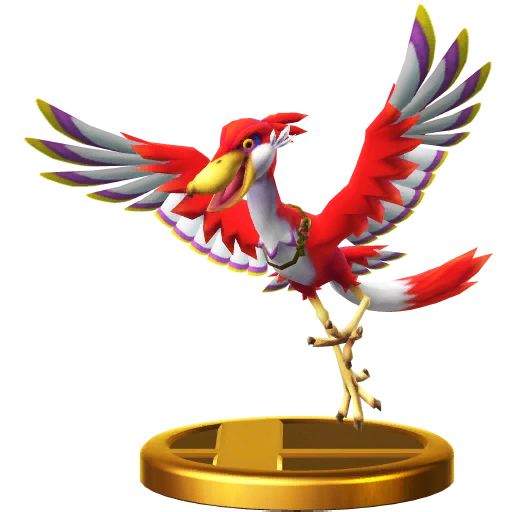 Why exactly a Cucco flees is anyone's guess. Maybe it knows what will happen when it is attacked and is trying to save you from that boundless rage. Once angered, it will call its flock and attack the last player to hit it. If it's thrown and hits a fighter, whomever it hits will suffer the wrath of the flock. These chicken-like birds don't seem to be aware that there's a fight going on, and if they get hit too often, they'll explode with rage! They'll call in a bunch of their mates to relentlessly peck whoever touched them last. Of course, that could be the person they were thrown at – not just the thrower!