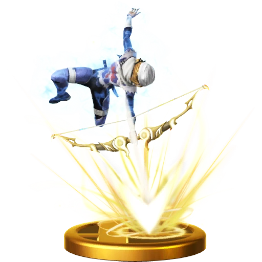 Sheik's Final Smash uses a gigantic bow to fire a Light Arrow across the screen. If multiple foes are in its path, it will strike them all, ignoring shields like they're not even there. Sheik's Light Arrow is more damaging than Zelda's, and it launches its victims at a lower angle. Sheik's Final Smash uses a gigantic bow to fire a Light Arrow across the screen. If multiple foes are in its path, it will strike them all, even penetrating straight through their shields. Sheik's Light Arrow is more powerful than Zelda's and launches its targets at a more shallow angle.