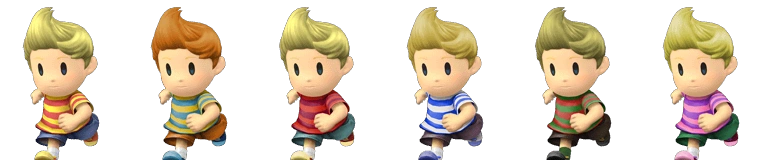 - Up Taunt - Lucas trips, shakes his head, and gets back up. Probably derived from Fassad's banana peels. It could also possibly be a reference to the naming screen in MOTHER 3, where Lucas attempts to run off the screen, but trips.