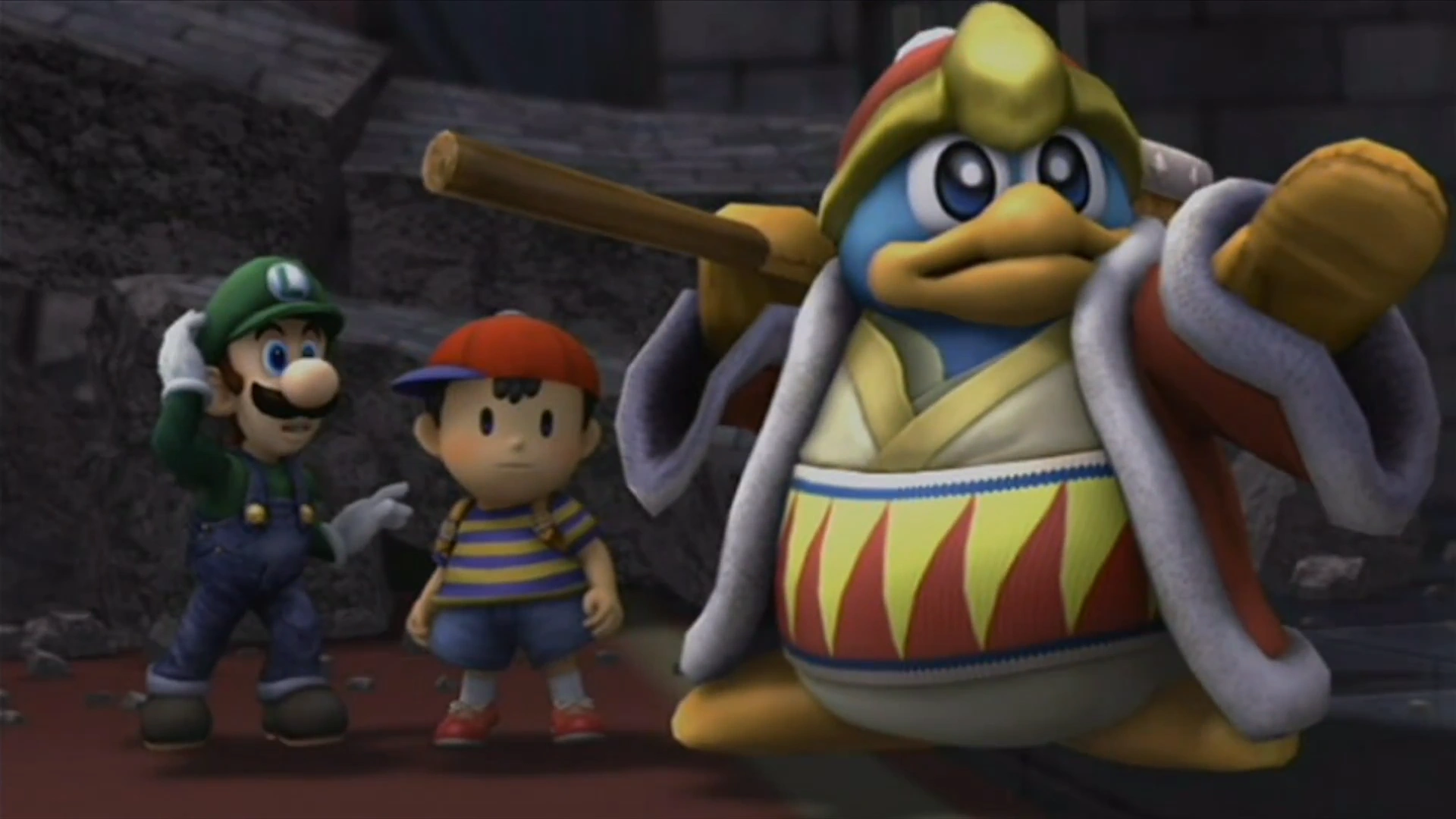 Luigi, Ness, and King Dedede are ready to set out after being revived.