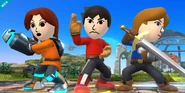 Mii Fighters are playable characters in Super Smash Bros. for Nintendo 3DS and Wii U. The game player can choose which of their Miis they want to play as (being able to import Miis from their console), and can select from a wide selection of Special Moves. Players will also be able to fully customize the Mii's clothes.
