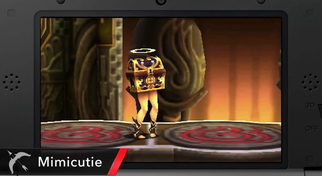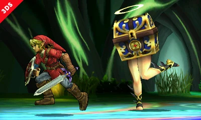 Mimicuties appear as enemies in Smash Run. They can disguise themselves as treasure chests, but if a player draws too close they will sprout legs. If the player is in the air while a Mimicutie is after them, they will jump and head towards the player's spot quickly and use rapid kick attacks before ending with a powerful kick. In the ground, they spin their legs quickly similar to using a Down Smash ability. Mimicuties can be easily recognized as their treasure chest has a much more lighter palette then the regular one.