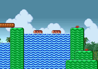 This stage is based on the first area of Doki Doki Panic and Super Mario Bros. 2. In both games the player has to jump on falling logs that go down waterfalls. Logs were also used logs as platforms or bridges that span over gaps. In this stage there are falling logs and there are three logs in the center of this stage that is used as a bridge. Super Mario Bros. 2 and Doki Doki Panic also features an enemy named Pidgit that flies around on a carpet. This enemy can be seen flying around on this stage and is used as a moving platform. The first boss of the game, Birdo, can be seen in this stage shooting eggs at the players.