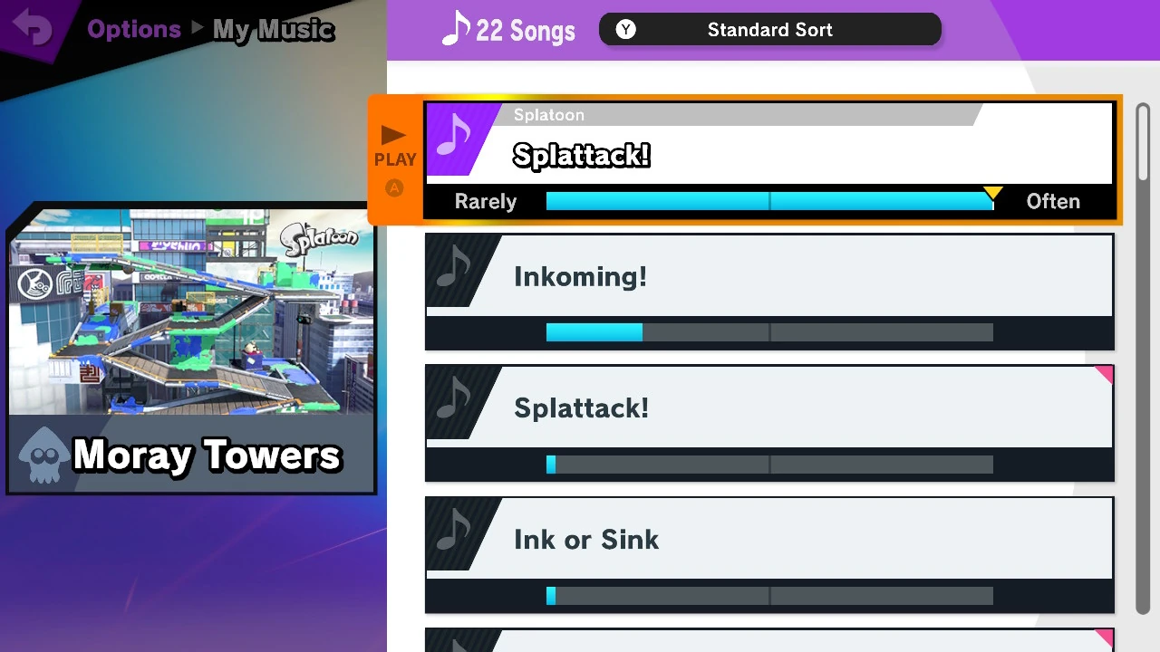 The My Music screen for Moray Towers from Super Smash Bros. Ultimate