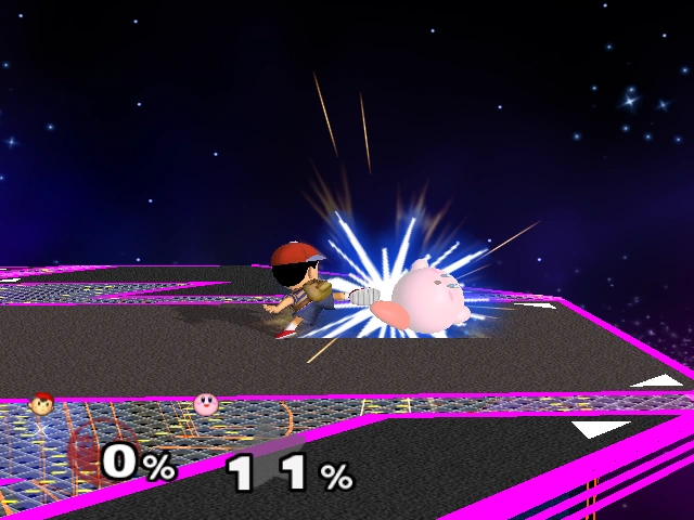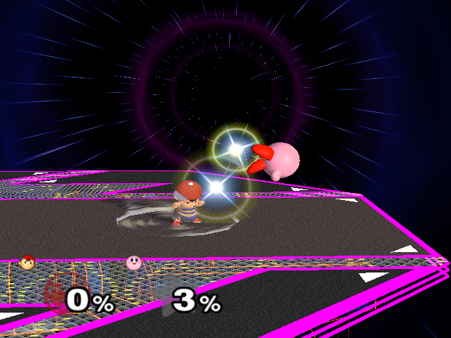 8% | Ness somersaults onto the stage and performs an upward dropkick attack. | ||