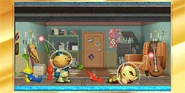 Up: Jumps joyfully, similar to his animation in his games when he gains a new part for the Dolphin.