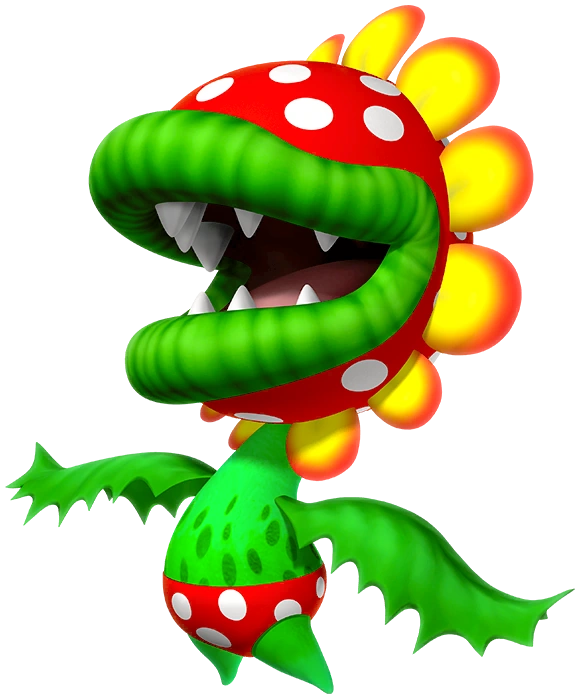 | A colossal Piranha Plant. Unlike its pipe-inhabiting cousins, it uses its legs to walk around. It can fly, too. As you might expect, it often appears as a boss character in Mario adventures. This may come as a surprise, but it also displays surprising dexterity in kart races and ball games. | |||