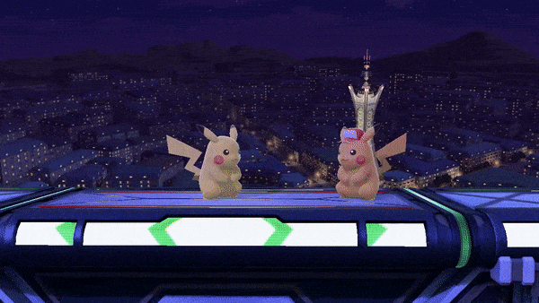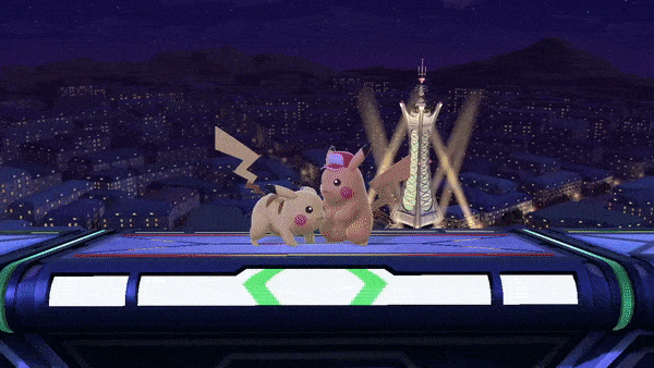 Pikachu (ピカチュウ) is a playable character in Super Smash Bros. Ultimate, representing the Pokémon series. It was revealed during the E3 2018 Nintendo Direct on June 12th, 2018. It is classified as Fighter #08.