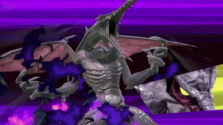 Ridley thrusts forward knocking up to 2 victims onto Samus' Gunship that comes in contact during the attack. Ridley will then fire a jet of plasma as the Gunship floats away, blowing it up creating a huge explosion. This explosion launches opponents when the cinematic ends. If the opponents are above 100% when the cinematic ends, they will be instantly KO’d.