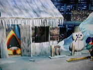 In the Ice Type version all platforms and surfaces extremely slippery, so characters are more likely to trip. A hut can be seen in the background, and there are two icy platforms that slope inwards slightly.