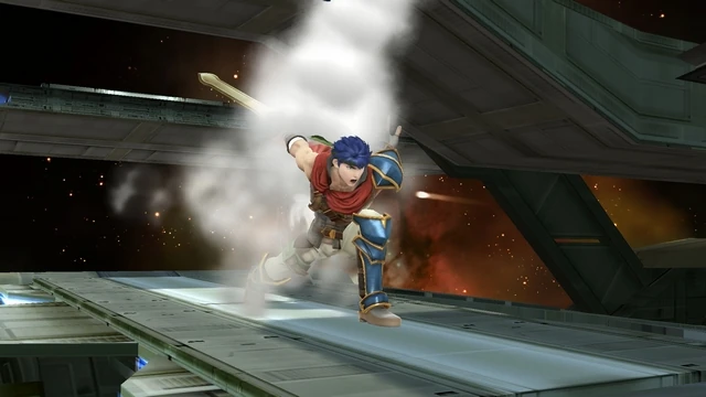 The move can be executed very quickly, making it one of Ike's fastest moves. The charge stance can be held indefinitely. If the move does not connect, it has very low ending lag, giving Ike a chance to follow up with a different attack. This move can also be used while off the stage to give Ike significant horizontal recovery, as it travels half the length of Final Destination uncharged to nearly the entire length fully charged. It should be noted that the dash stops at platform edges, preventing one from accidentally SDing. Also, after using it in the air, Ike is left in a Helpless state.