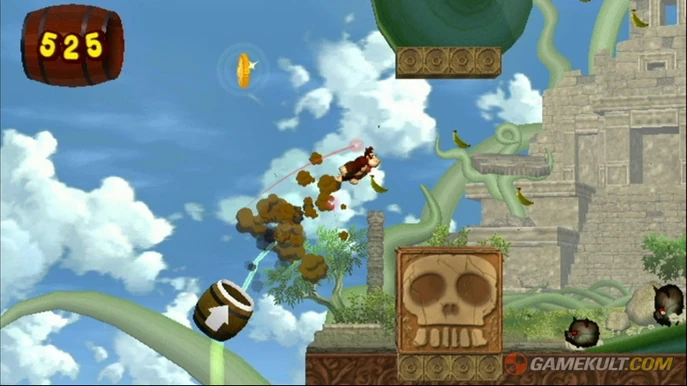 Donkey Kong progresses through the Sky Garden stage of Donkey Kong: Jungle Beat.