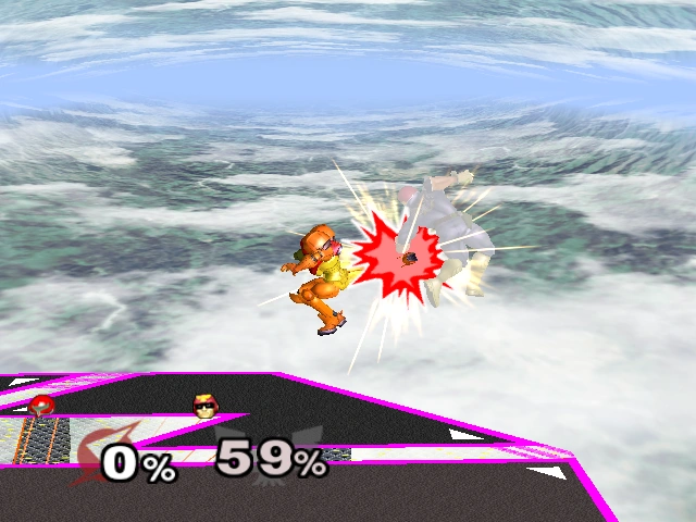 14% (clean), 10% (late) | Samus performs a midair jump kick attack that has sex kick properties. Deals horizontal knockback. | ||