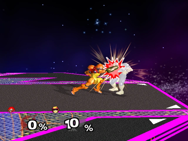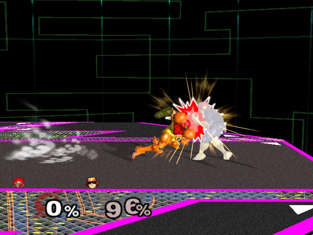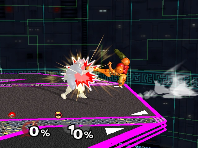 15% | Samus thrusts her arm cannon forward. Deals surprisingly good knockback for a low-damaging smash attack. This attack can be angled up or down. | |