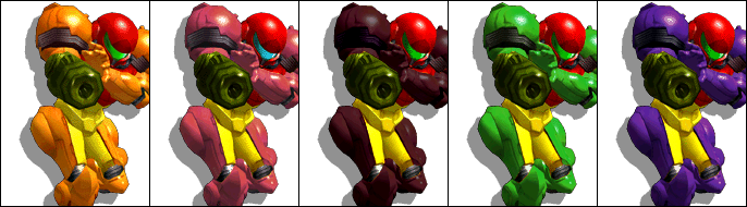 Samus's alternate costumes in Super Smash Bros. Melee.