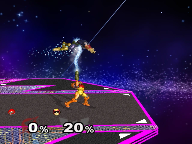 16% | Samus swings her arm cannon in an arc below her. A powerful meteor smash, being the fifth most powerful in the game. | ||