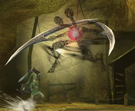 An odd enemy with two heads. Its legs might suggest that it's a beast of some sort, but in actuality, a Shaydas is formed by swarms of Shadow Bugs. Maybe that's why recklessly attacking it will do no good--you must strike its pink core to defeat it. Just watch out for the giant blades that it brings to the party. Mind the blades, and pick your attacks wisely!