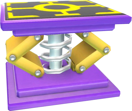 A strong spring that can bounce you higher than you've ever been before. If you throw this down while you're midair, you'll get a boost and sail even farther into the air! Try to be careful, though, since this spring may fall on its side and end up launching you sideways instead of up.