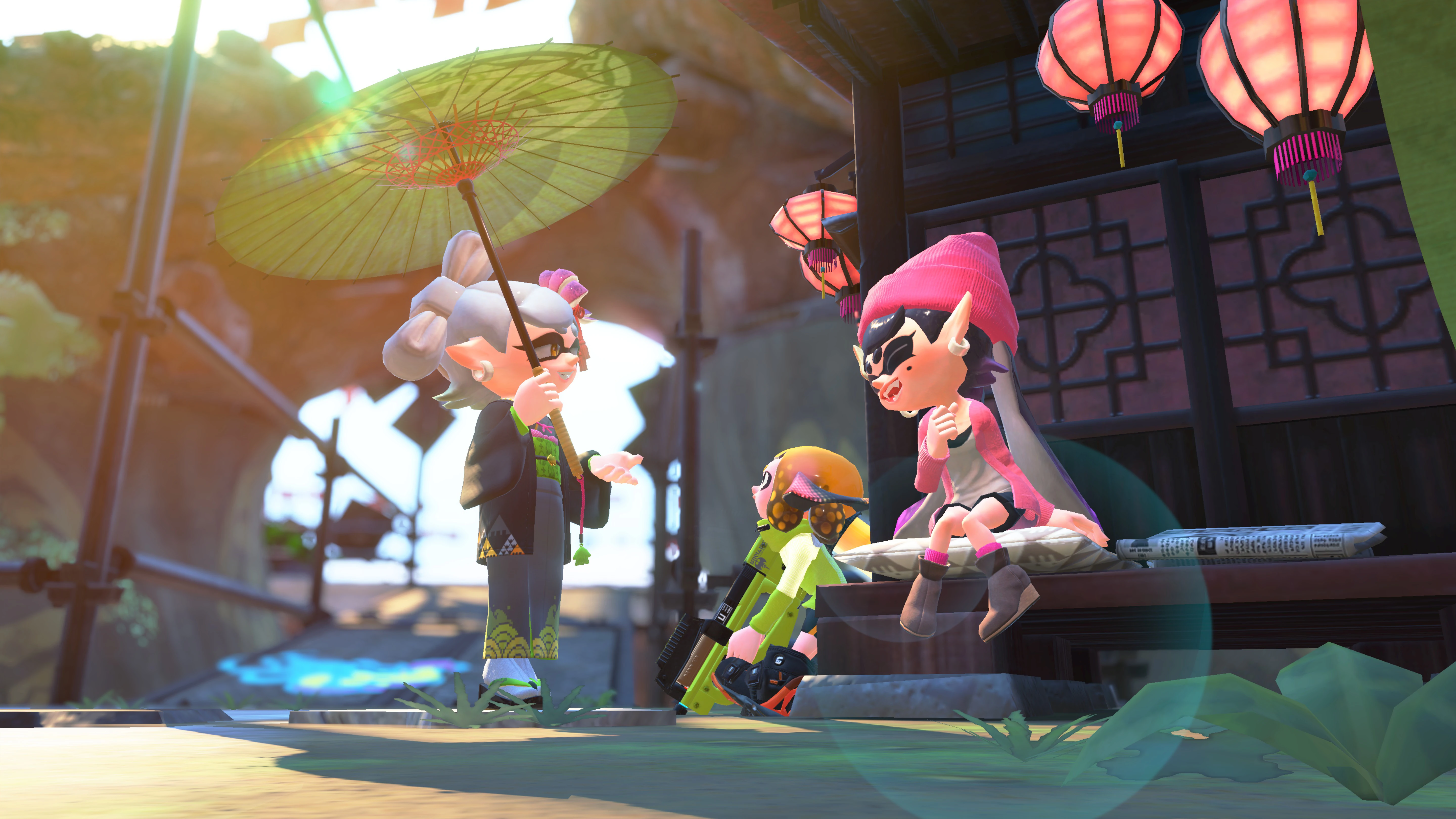 In the first Splatoon, the Squid Sisters are the hosts of Inkopolis News. Every time the game is booted up, they appear on a large screen overlooking Inkopolis Square and inform the player of any updates, new Splatfests, and what stages are in the rotation for Turf War and Ranked Matches, as well as sharing some comedic banter. During Splatfests, they would also appear in the Square to hold live concerts.